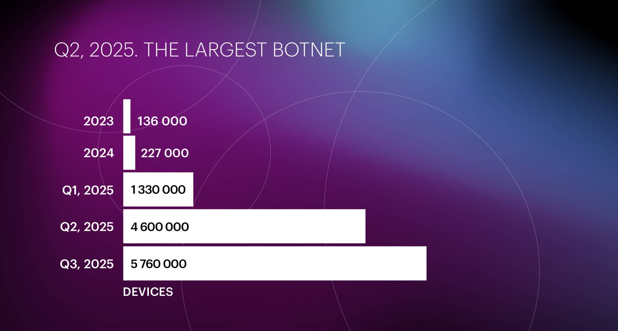 In Q3, on September 1, 2025, we observed another large-scale attack from the same DDoS botnet. During mitigation, we blocked 5.76 million IP addresses — meaning the botnet’s size more than quadrupled in less than six months.
