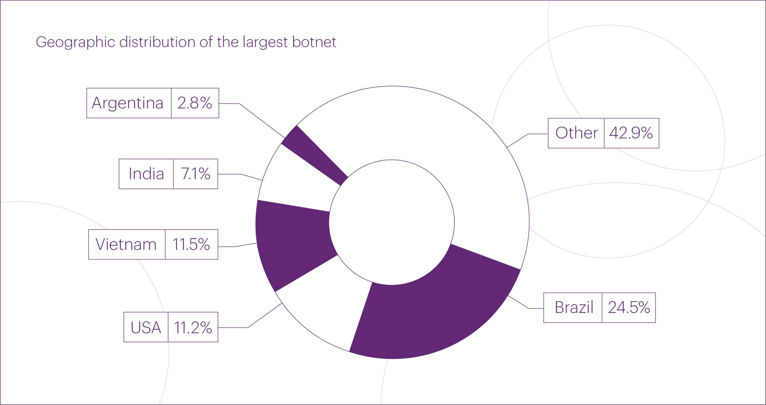 Vietnam (+83%) and India (+202%) showed the most impressive growth among the top five sources of malicious traffic compared to the previous attack by this botnet.