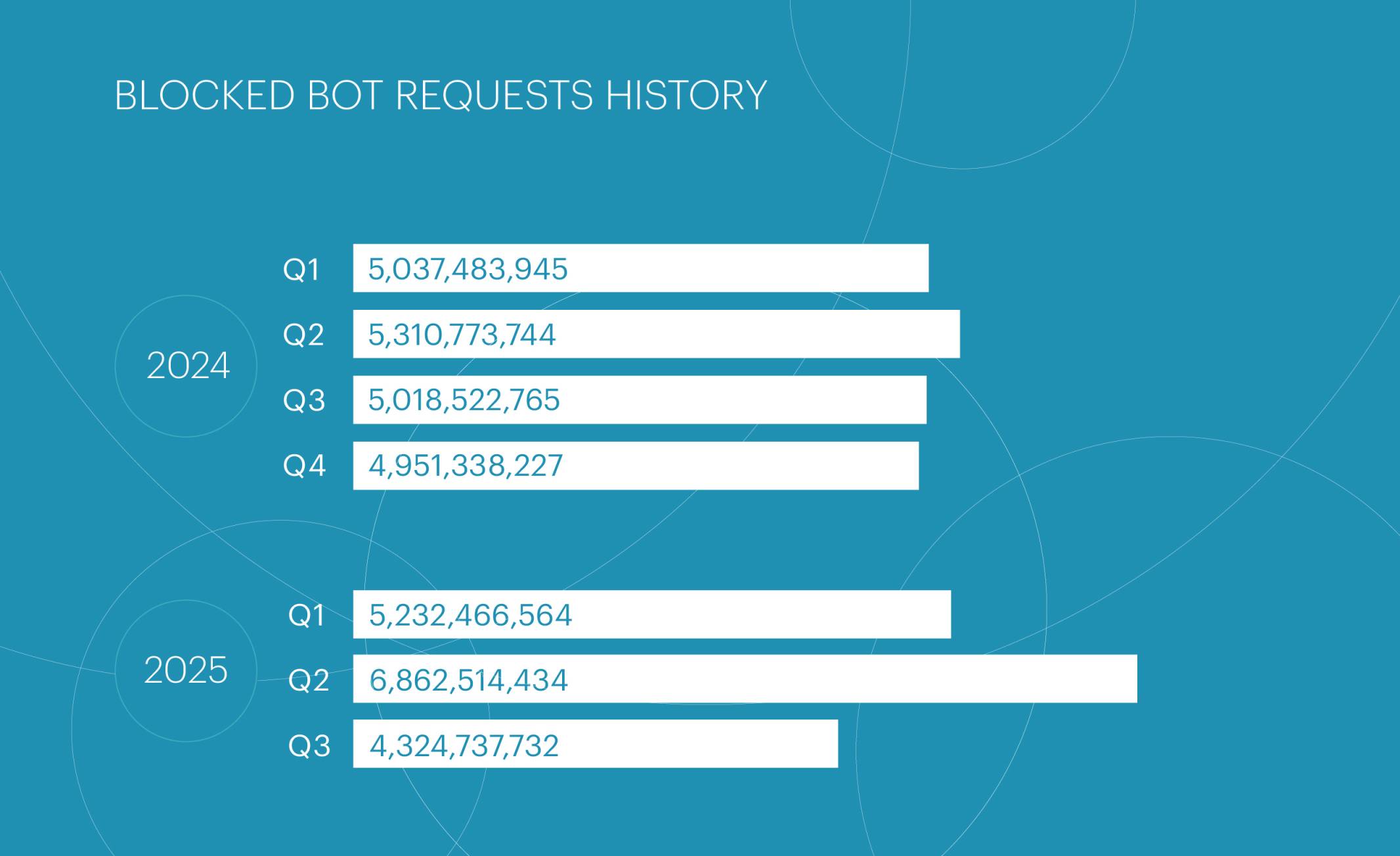 As we noted in the previous report, the growth observed in Q2 was almost entirely driven by a single, exceptionally large-scale attack that lasted more than a month. Once it ended in May, bad bot traffic volumes targeting protected resources dropped significantly.